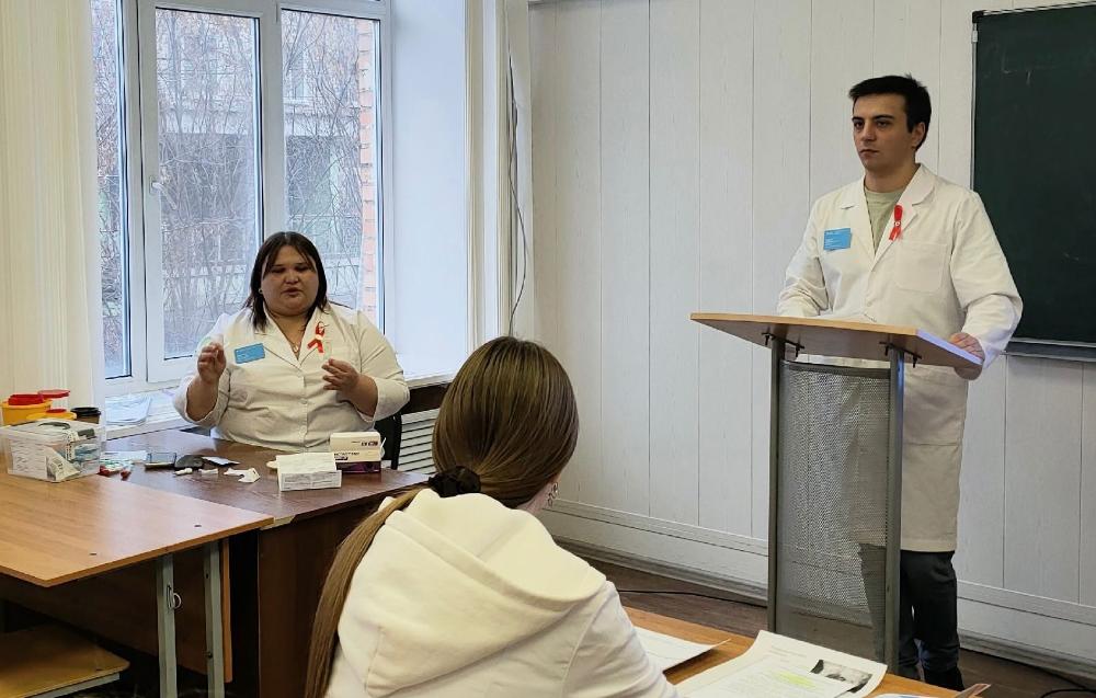 В преддверии Всемирного дня борьбы со СПИДом и в рамках реализации национального проекта «Продолжительная и активная жизнь» сотрудники ГКБ №3 им. И.С.Долгушина г.Тамбова провели профилактическую акцию в Тамбовском областном медицинском колледже. Медработники филиала поликлиники подготовили для студентов две лекции и мастер-класс.