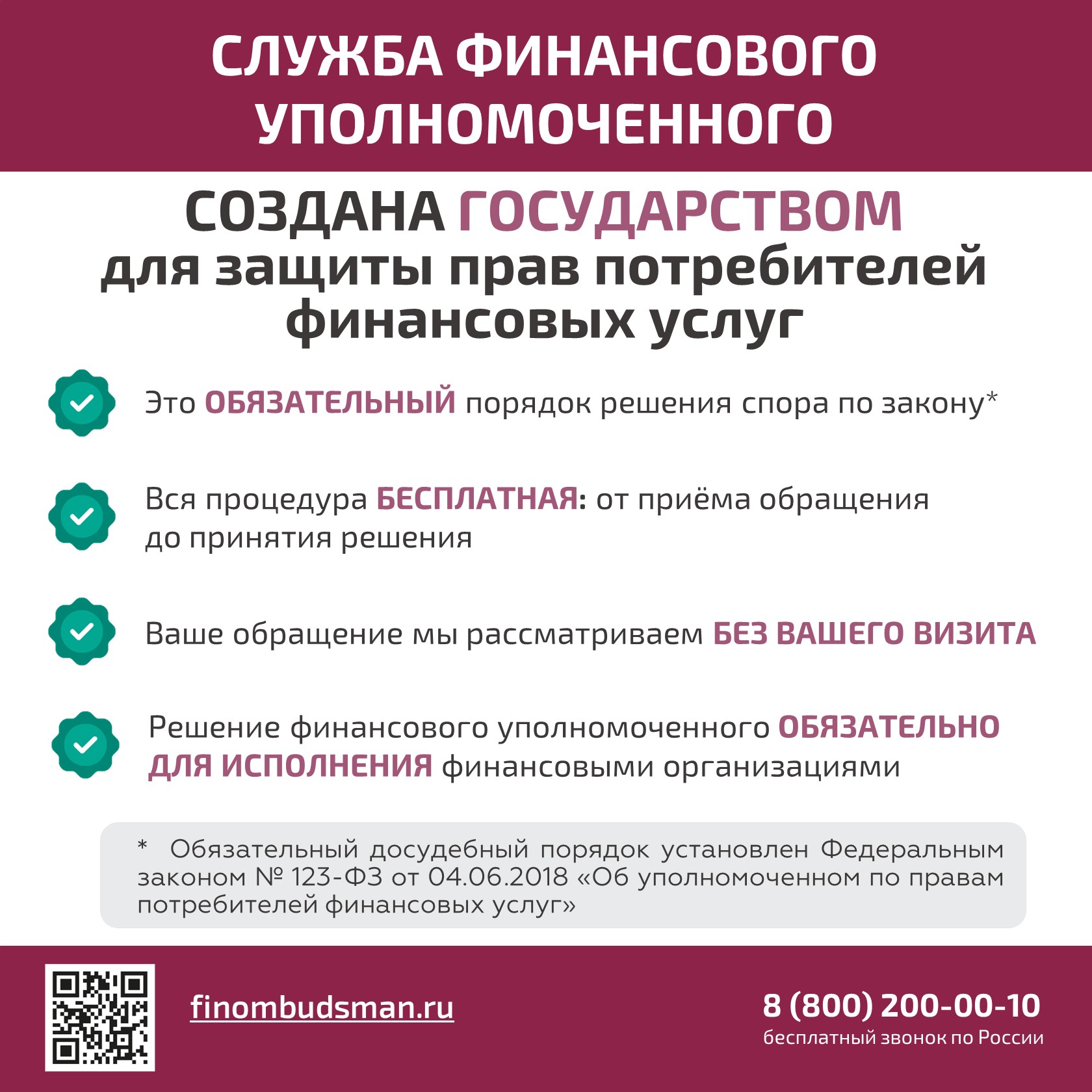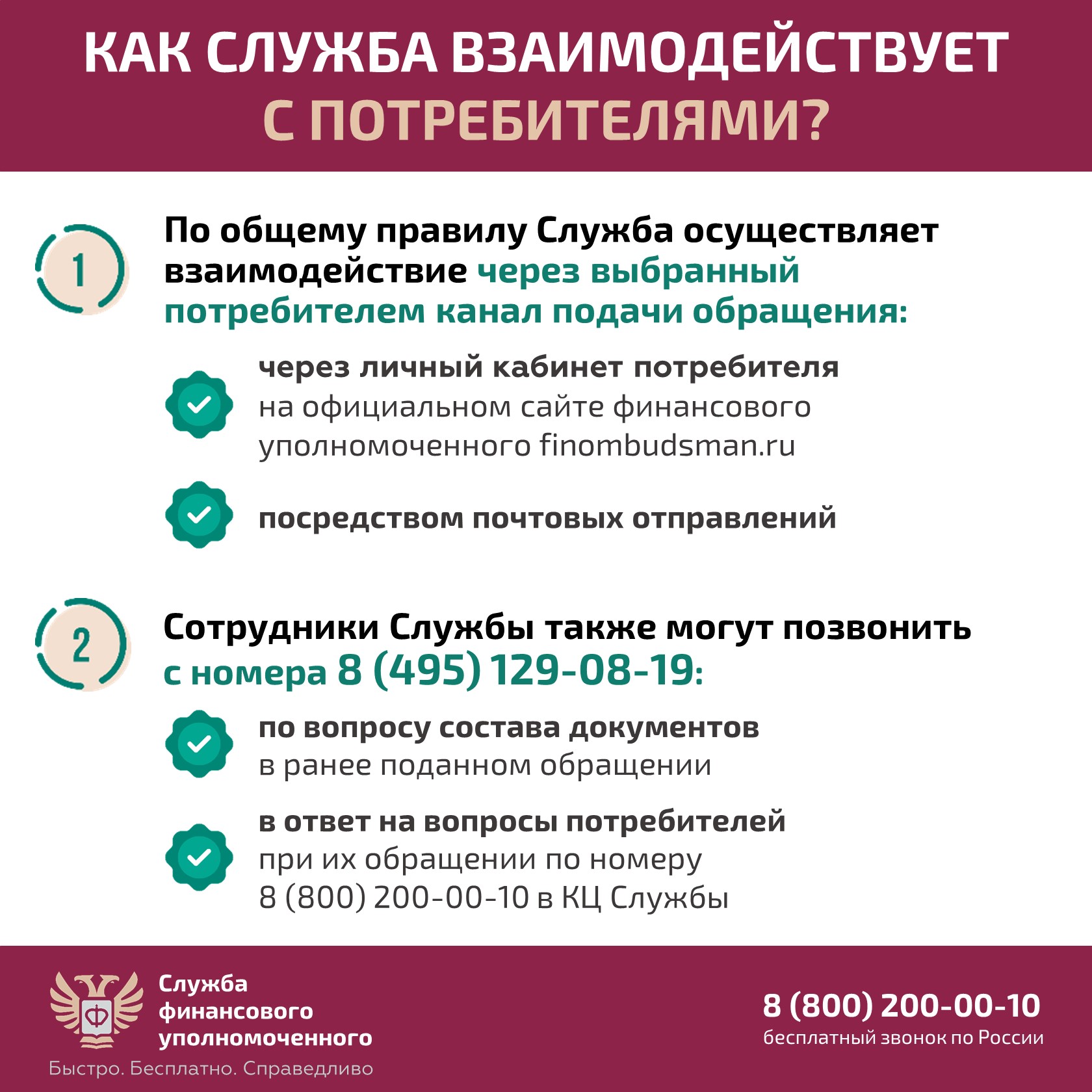 Напомним, что Служба финансового уполномоченного взаимодействует с потребителями финансовых услуг лишь в том случае, если потребитель подал обращение к финансовому уполномоченному или обращался с вопросом в контактный центр Службы. Вместе с тем рассмотрение финансовым уполномоченным обращений потребителей бесплатно по закону.