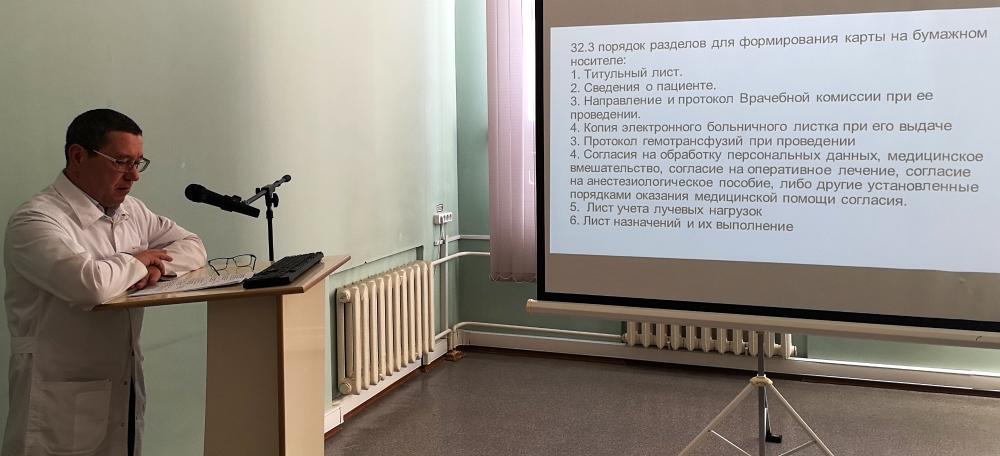 Было доложено о порядке ведения и оформления медицинской карты пациента, получающего медицинскую помощь в стационарных условиях, в условиях дневного стационара. Рассмотрен вопрос нормативно-правовой базы, алгоритм заполнения, ведения медкарты в соответствии с утверждённым законодательством порядком. Докладчик ответил на вопросы участников конференции.