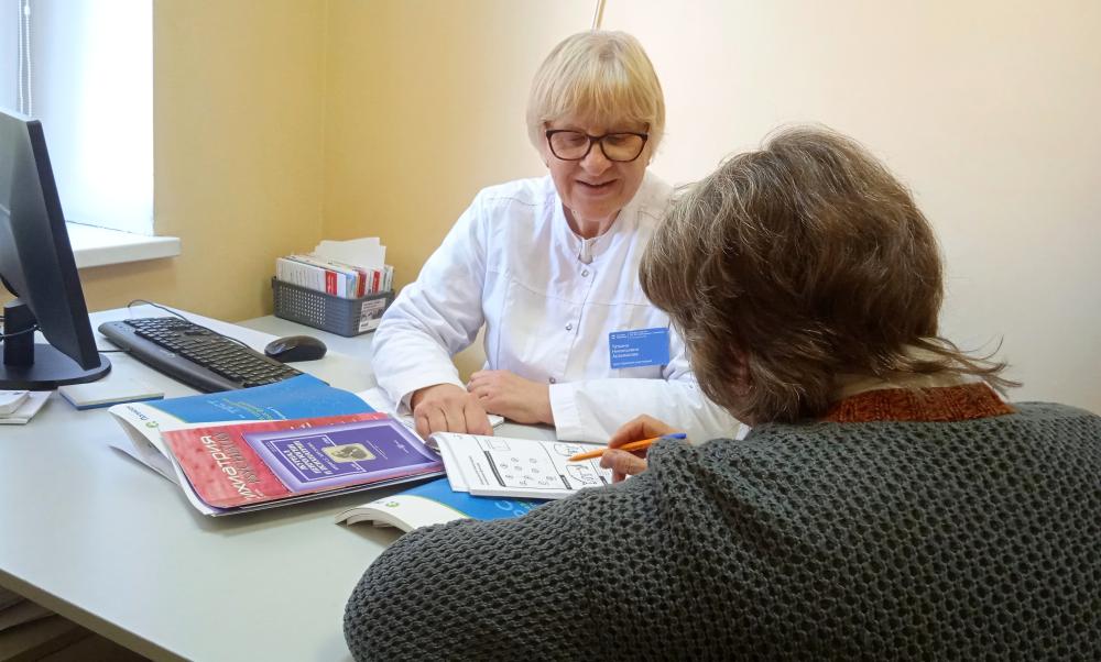 При выявлении старческой астении с пациентом работает врач-гериатр в тесном взаимодействии с другими специалистами. Гериатр проводит занятия, показывая пациенту упражнения на развитие мелкой моторики рук, чтобы предотвратить развитие деменции, назначает при необходимости лекарственные препараты, направляет на обследования, чтобы предупредить и своевременно выявить заболевания, характерные для старости, в том числе опасный остеопороз, назначает анализы, чтобы контролировать уровень гемоглобина, холестерина, сахара в крови. При необходимости пациенты направляются на стационарное лечение. Врач-гериатр и медицинская сестра посещают своих подопечных на дому. На обслуживании поликлиники есть несколько пациентов в возрасте 100+, которым уделяется самое пристальное внимание. Отдельное направление гериатрической службы — это работа с родственниками возрастных пациентов. Родственникам даются рекомендации по уходу и советы, как общаться с пожилыми людьми, как безопасно и комфортно для них организовать домашний быт. Татьяна Николаевна поделилась секретами долголетия: