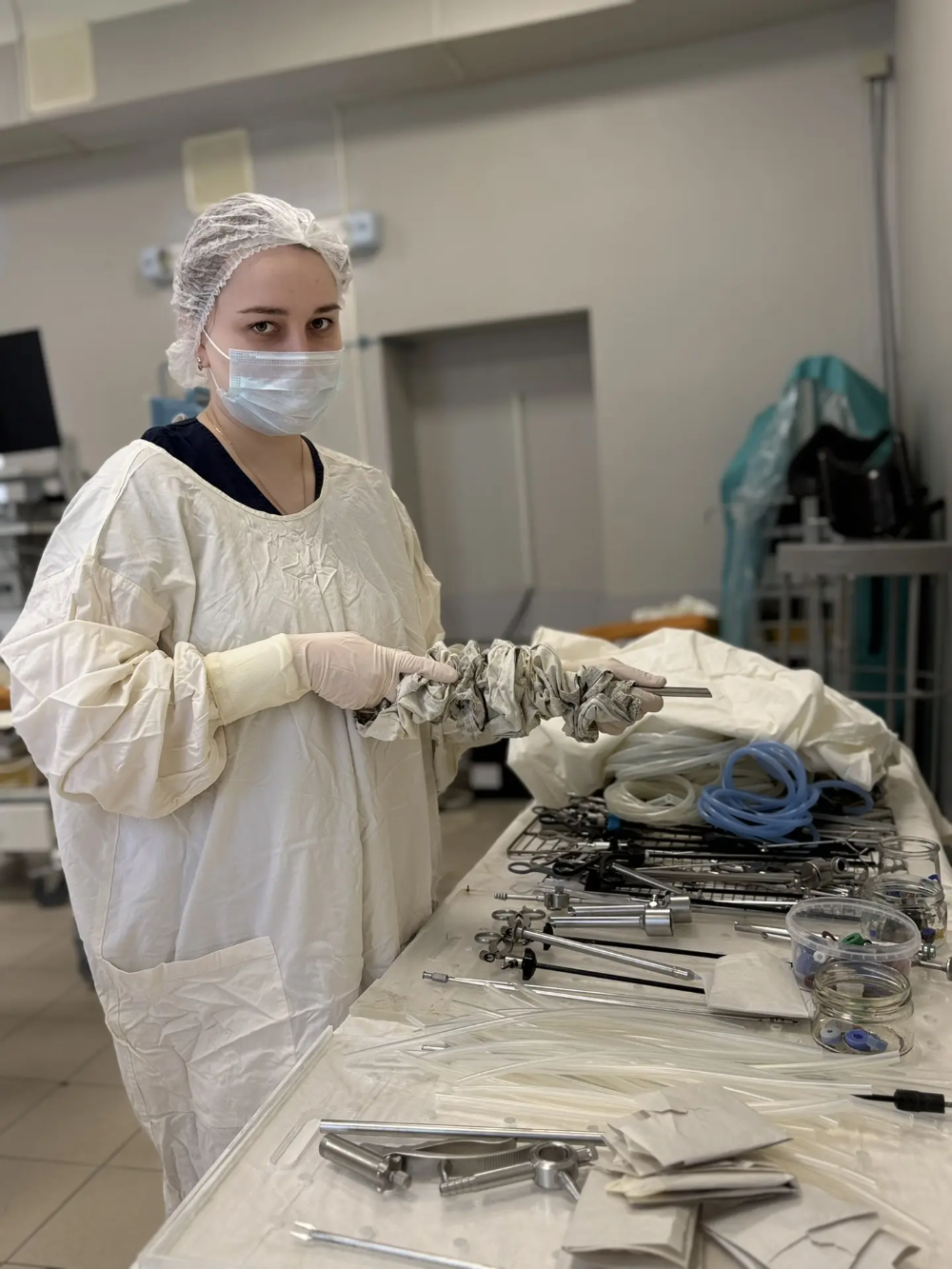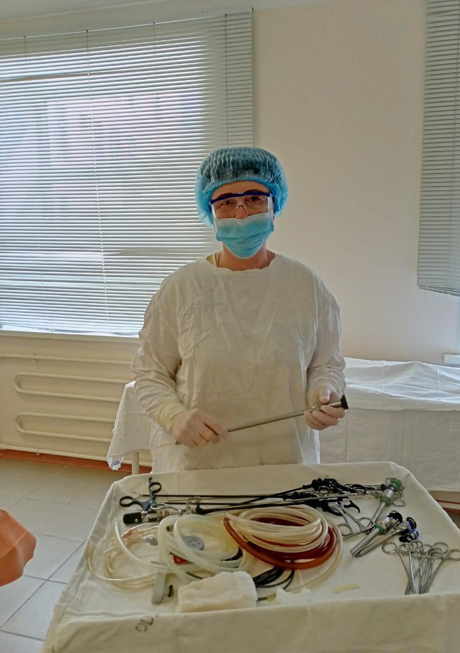 В операционном блоке №2 выполняются гинекологические операции. Старшей медицинской сестрой здесь трудится Лариса Владимировна Дмитриева. За её плечами — богатый опыт, в профессии — 30 лет. Путь в медицину начался с должности операционной медсестры в гинекологии в областной больнице. В те времена только начали осваивать эндоскопические операции, которые сейчас преобладают в оперативном лечении. Затем свою трудовую деятельность продолжила в городской клинической больнице № 3 на должности операционной медсестры гинекологического отделения, а потом — старшей медсестры оперблока №2.