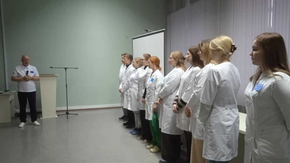 Самым трогательным моментом посвящения стали слова клятвы молодого специалиста. А в знак начала карьеры начинающим свой профессиональный путь врачам от первичной профсоюзной организации больницы были вручены подарки, корпоративные сувениры. Молодые специалисты выступили с ответным словом, они пообещали добросовестно трудиться, честно исполнять долг врача.
