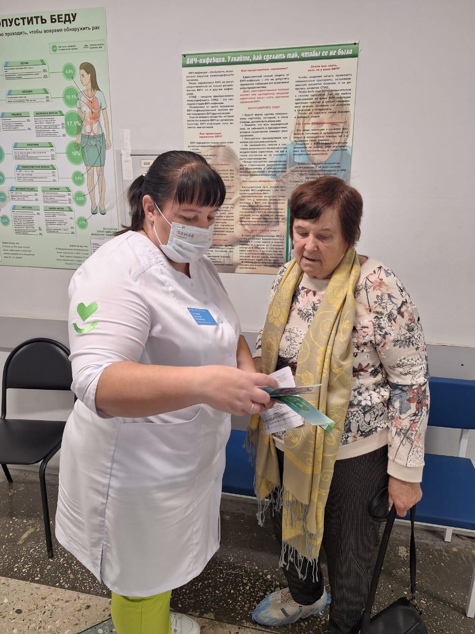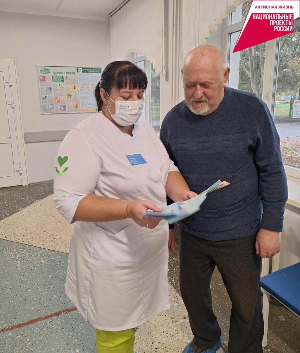 В поликлинике сотрудники отделения медицинской профилактики пообщались с пациентами, пришедшими на приём, объяснили, почему так важно обязательно включать в свой рацион фрукты и овощи, раздали памятки о рациональном питании и пригласили на диспансеризацию проверить своё здоровье.
